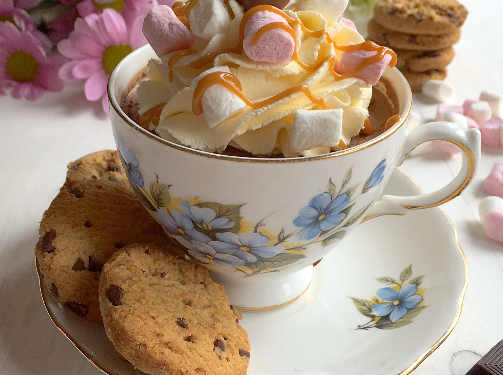 No better excuse to get your Great Nan’s tea set out, Hot Chocolate and Malteaser Cheesecake dip topped with Marshmallow Fluff Cheesecake.